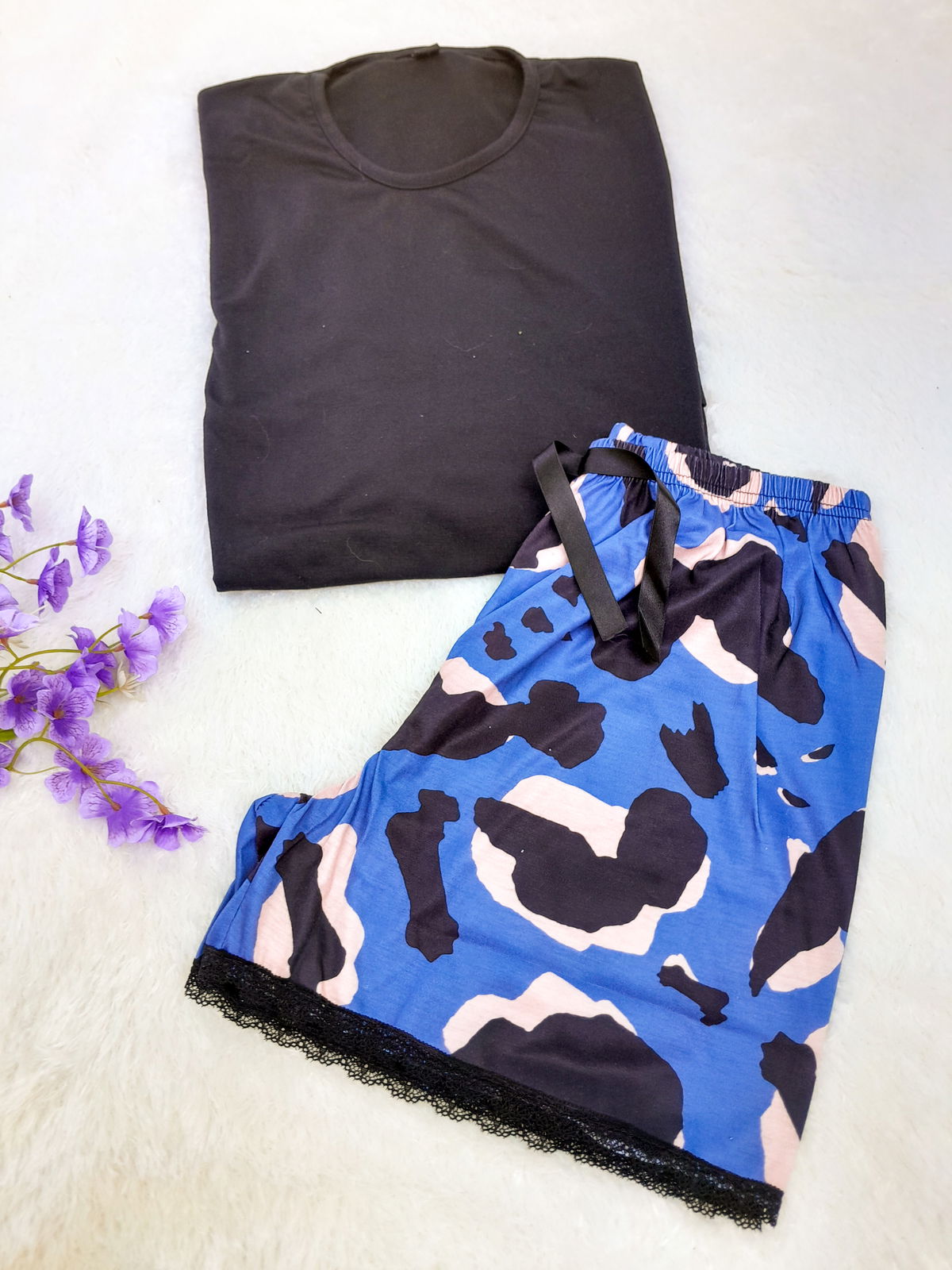 El conjunto está compuesto por:remera manga corta negra + short