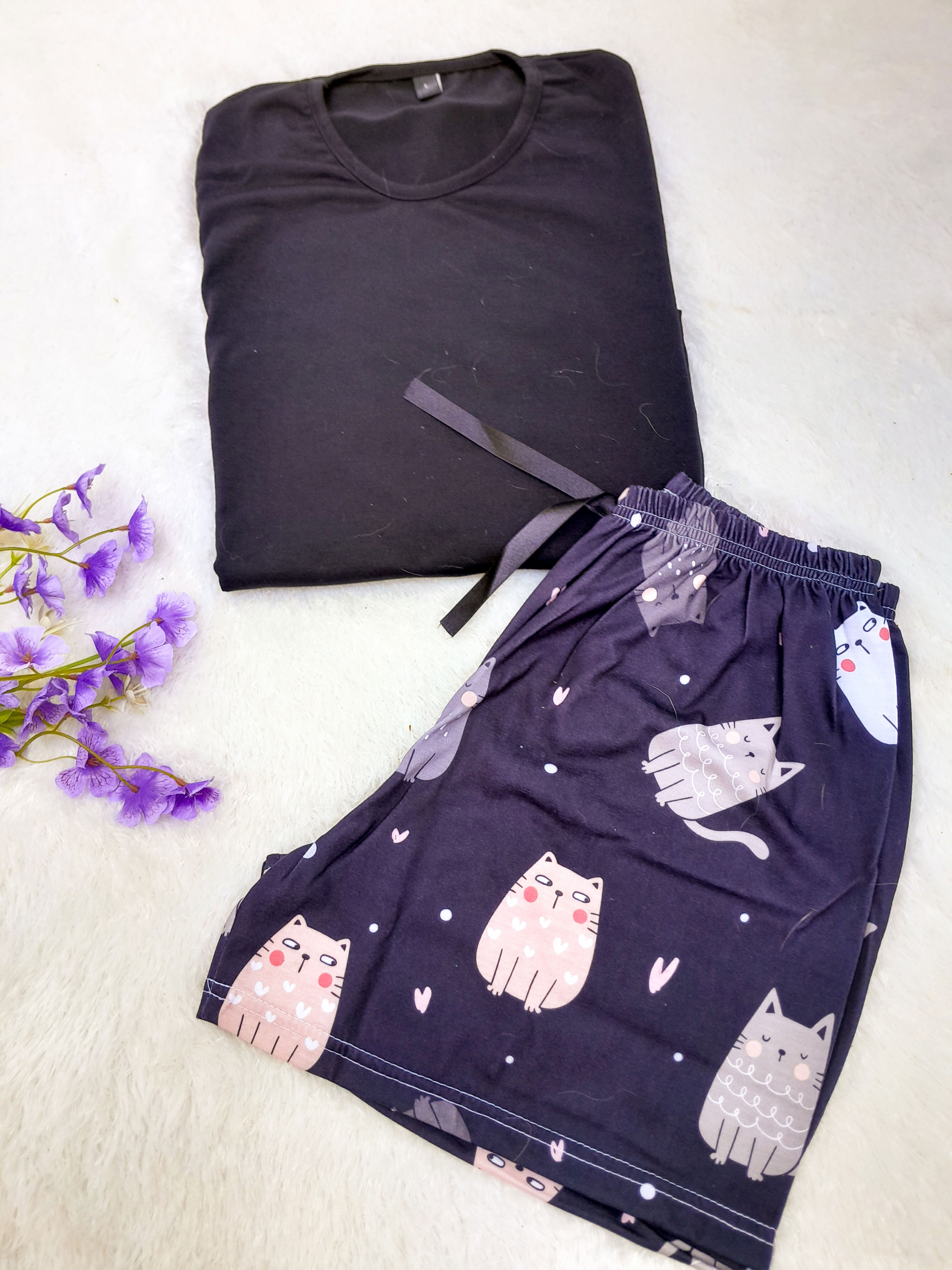 El conjunto está compuesto por:remera manga corta negra + short