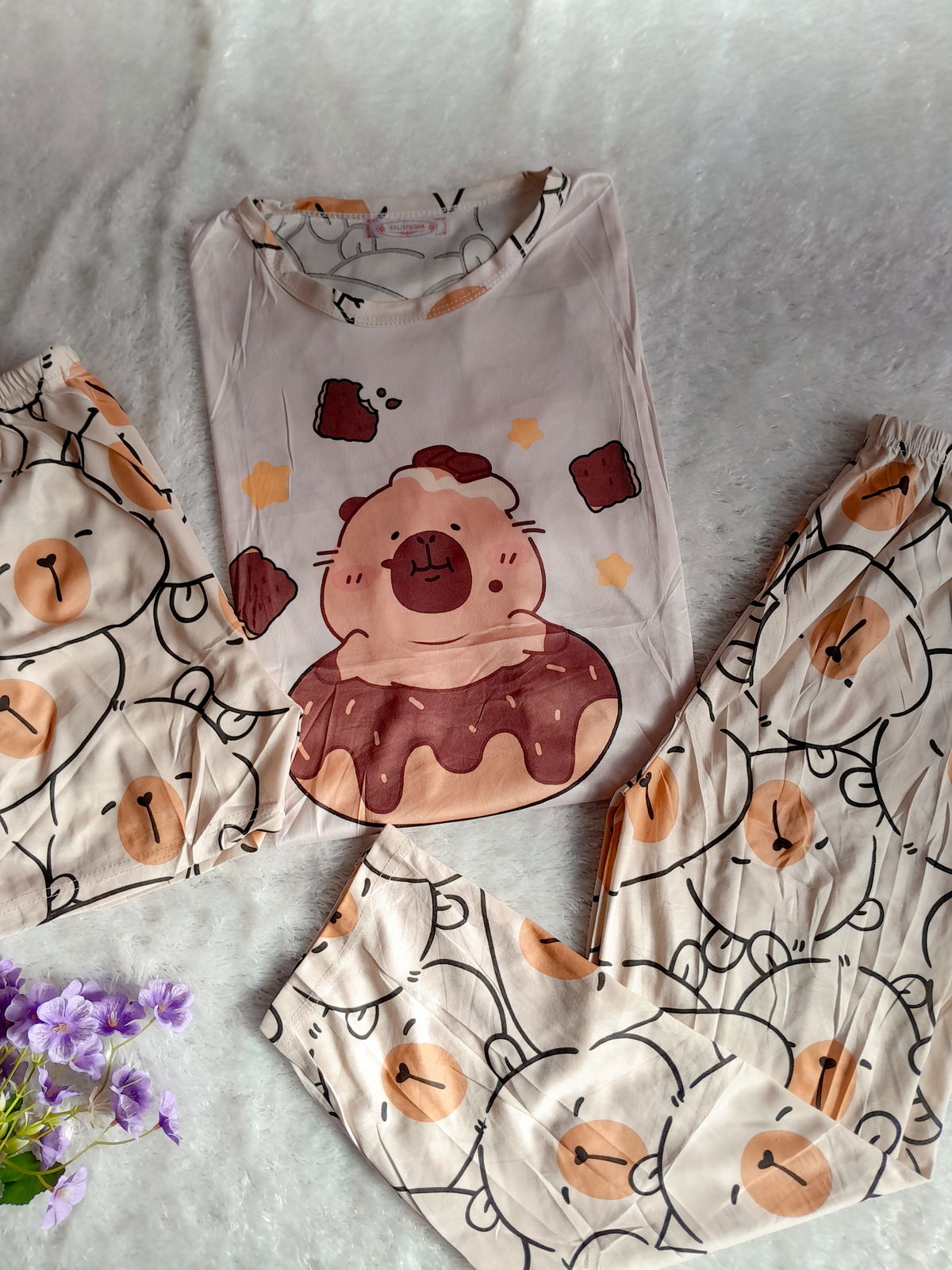 Hermosos conjuntos importados de 3 piezas,está compuesto por:remera manga corta + pantalón largo + shorts 🌸. -Material: algodón con poliéster -Talle: único(abarca hasta talle 44/46 aprox)