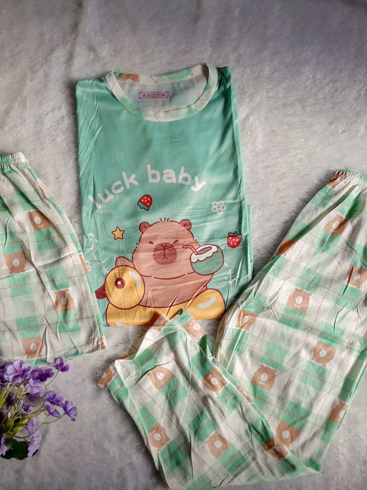 Hermosos conjuntos importados de 3 piezas,está compuesto por:remera manga corta + pantalón largo + shorts 🌸. -Material: algodón con poliéster -Talle: único(abarca hasta talle 44/46 aprox)