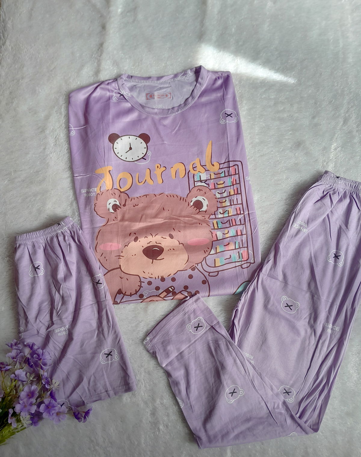 Hermosos conjuntos importados de 3 piezas,está compuesto por:remera manga corta + pantalón largo + shorts 🌸. -Material: algodón con poliéster -Talle: único(abarca hasta talle 44/46 aprox)