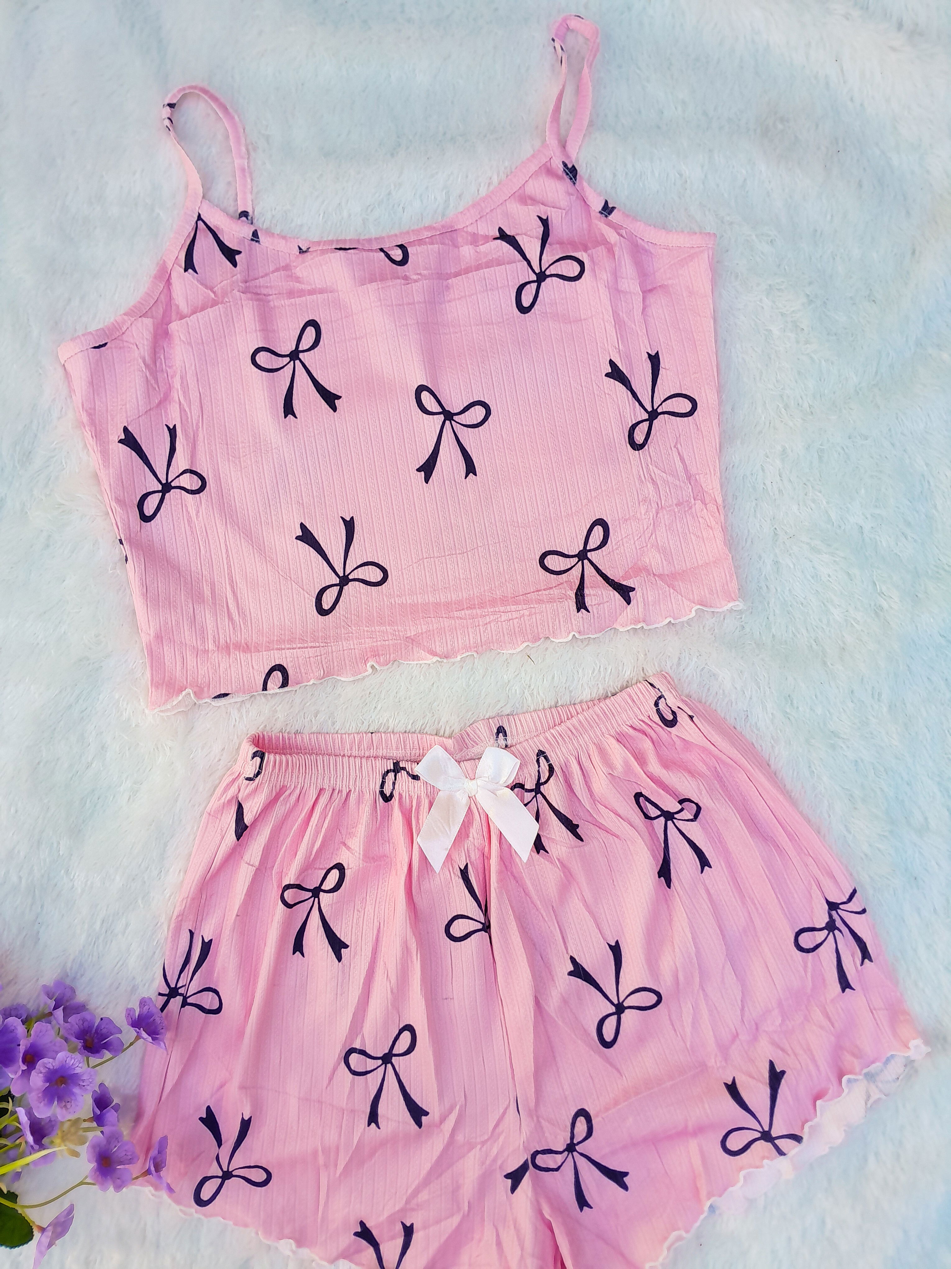 Hermosos conjuntos importados de 2 piezas,está compuesto por:musculosa/top + shorts 🌸.Con detalle súper delicado de moñito 🎀 en short y detalle de color en final de short y musculosa/top.