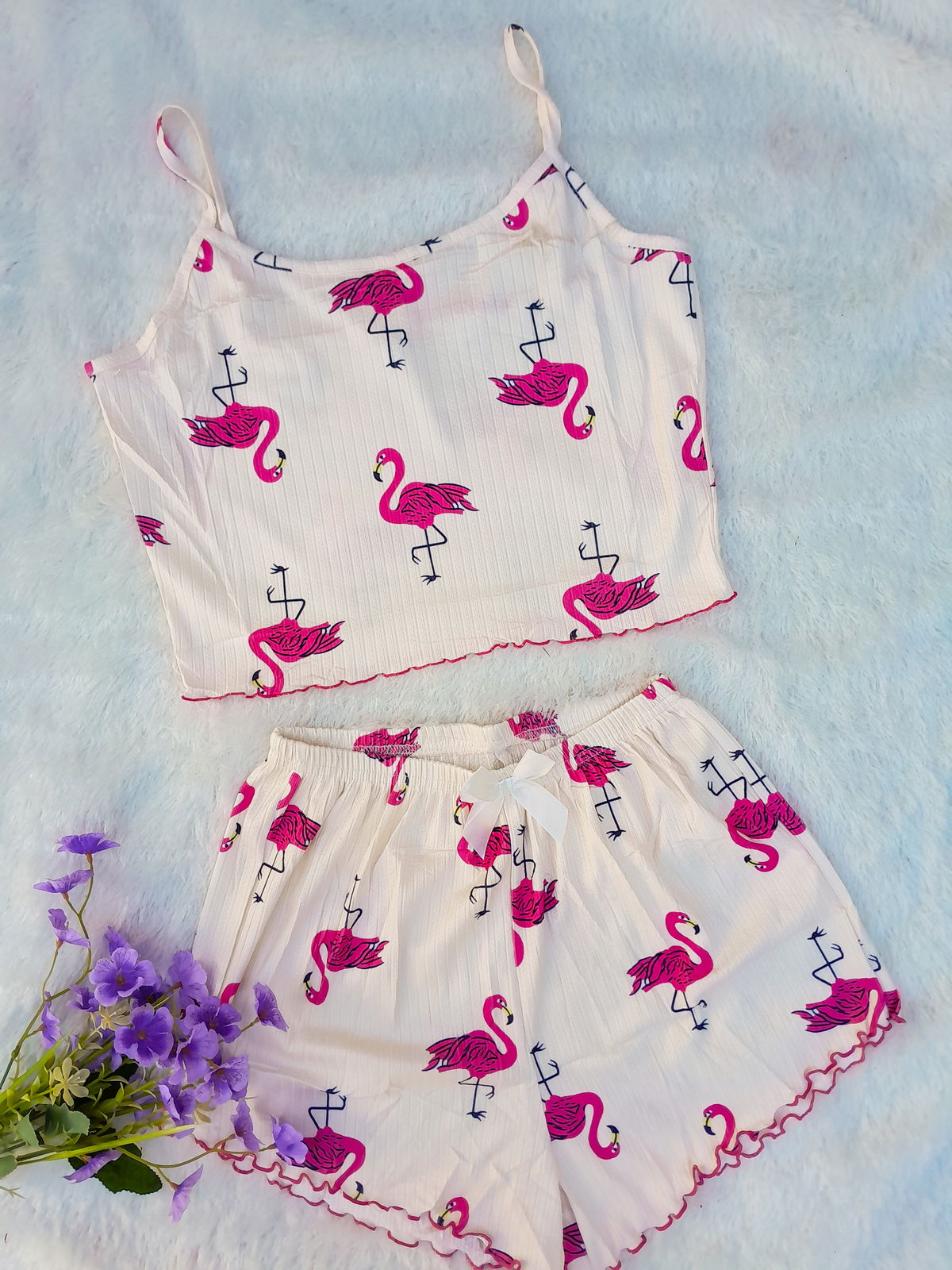 Hermosos conjuntos importados de 2 piezas,está compuesto por:musculosa/top + shorts 🌸.Con detalle súper delicado de moñito 🎀 en short y detalle de color en final de short y musculosa/top.