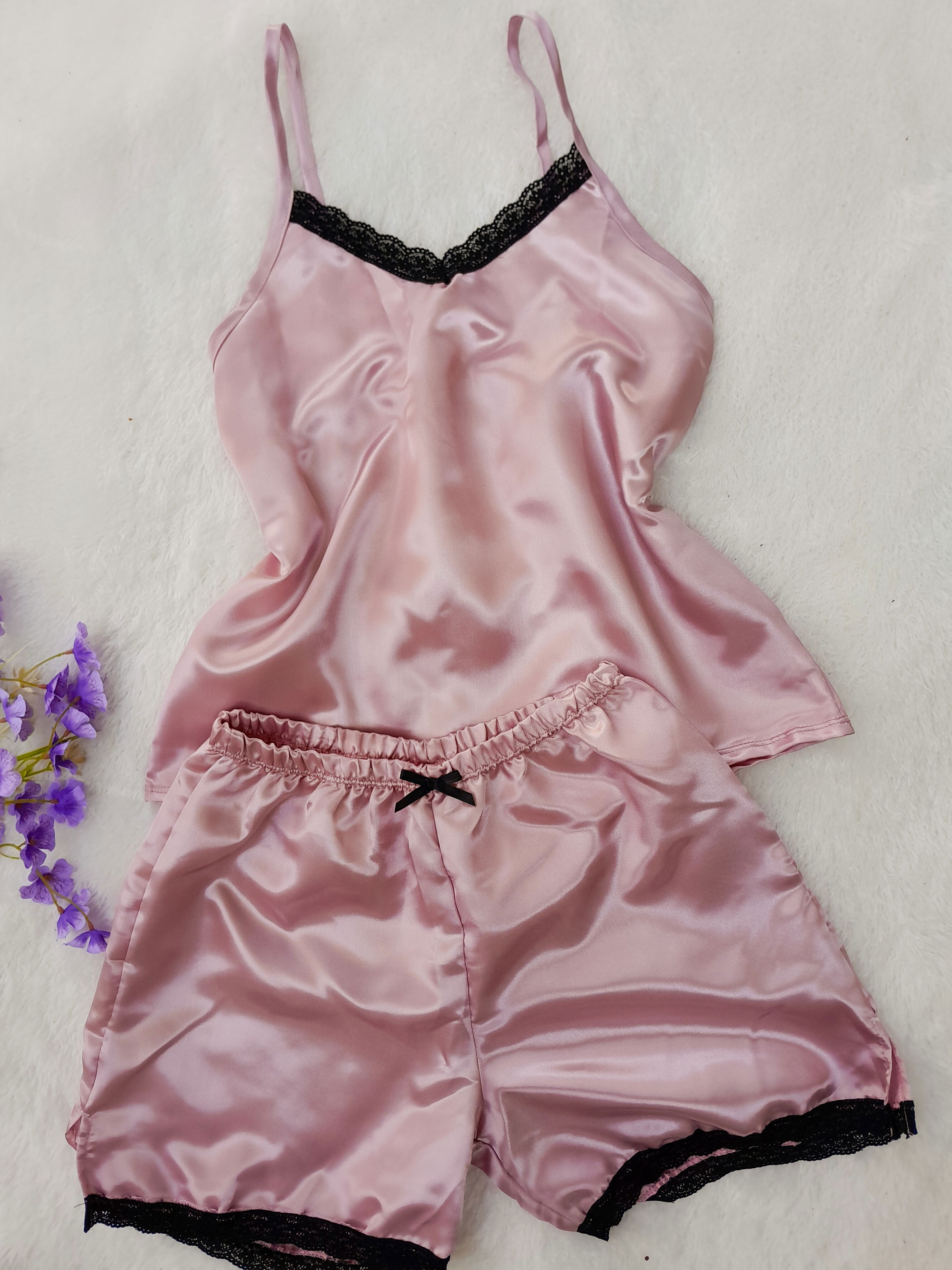Con detalle super delicado de encaje en parte superior de musculosa y parte inferior de short
