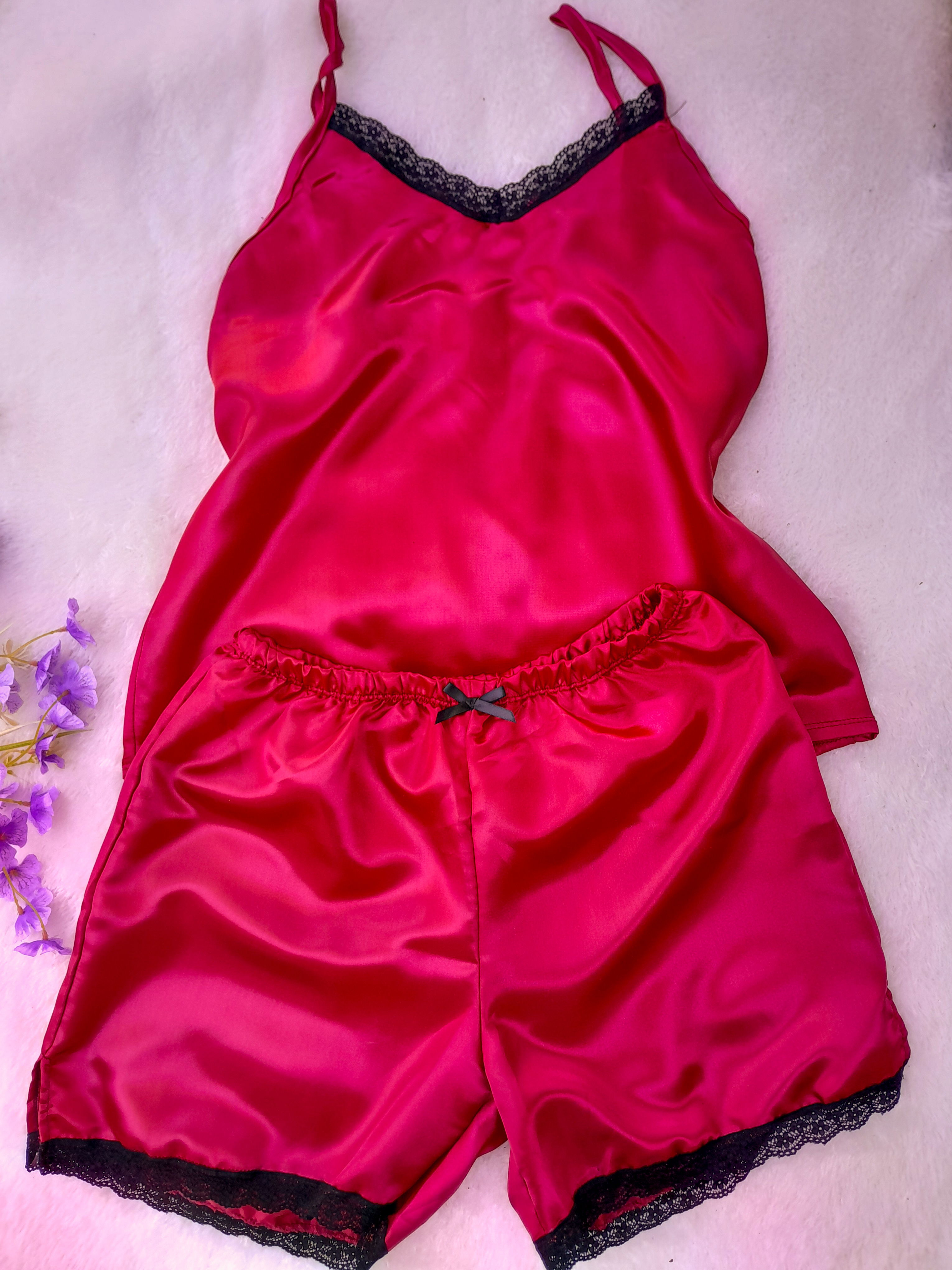 Con detalle super delicado de encaje en parte superior de musculosa y parte inferior de short