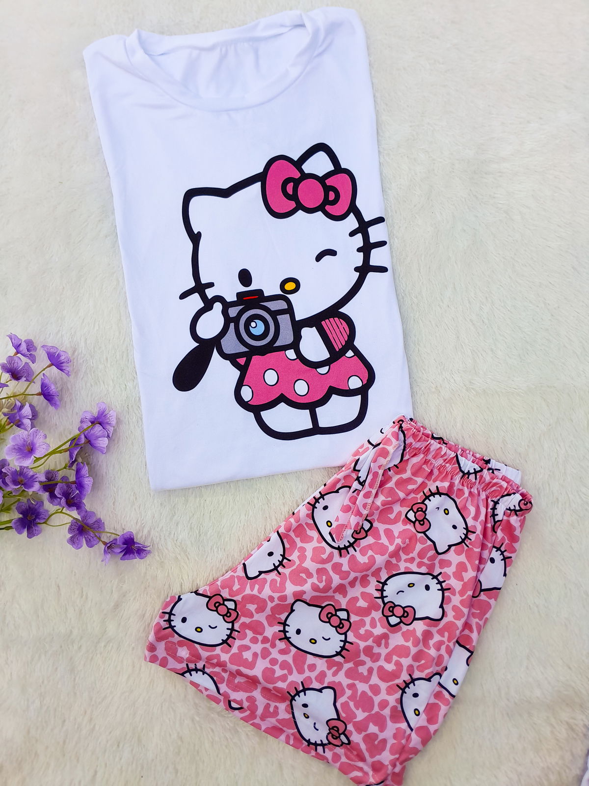 Conjunto compuesto por: remera manga corta + shorts.Tela súper suave para estar realmente muy cómoda/o 🩷✨