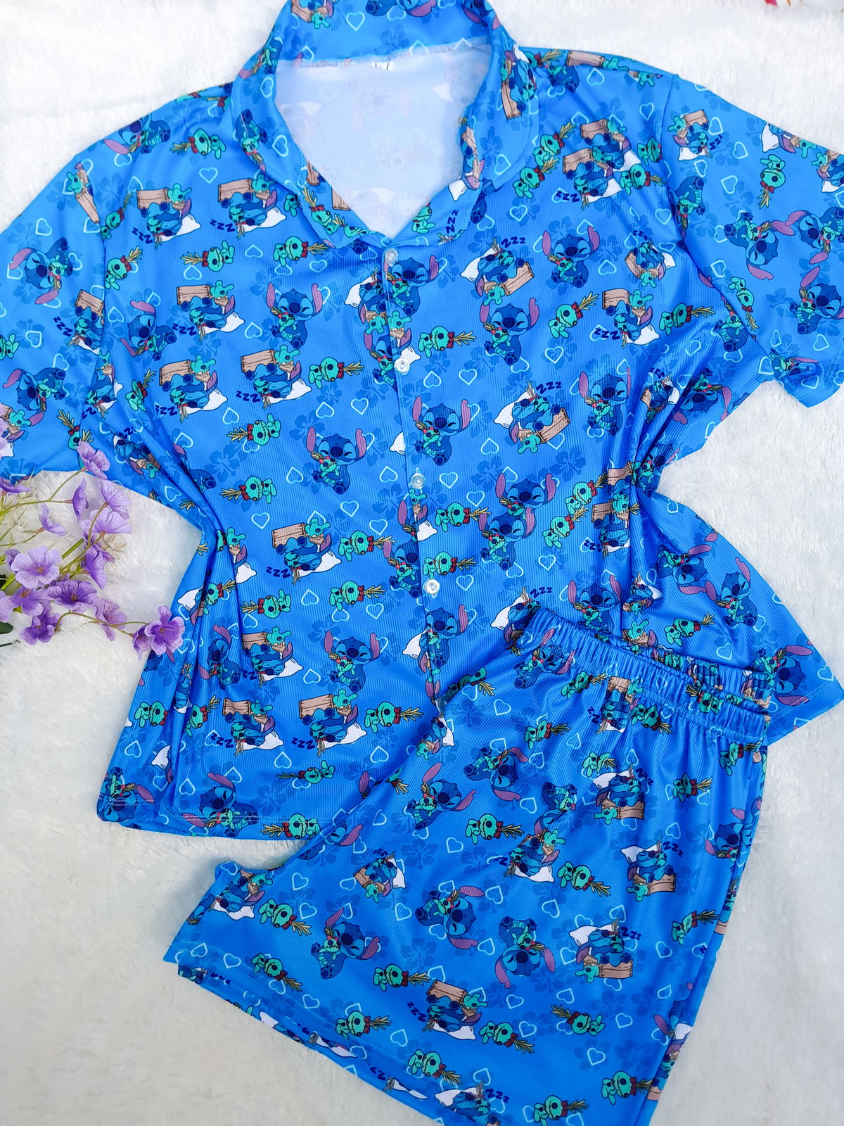 Stitch celeste corazones(camisero)
